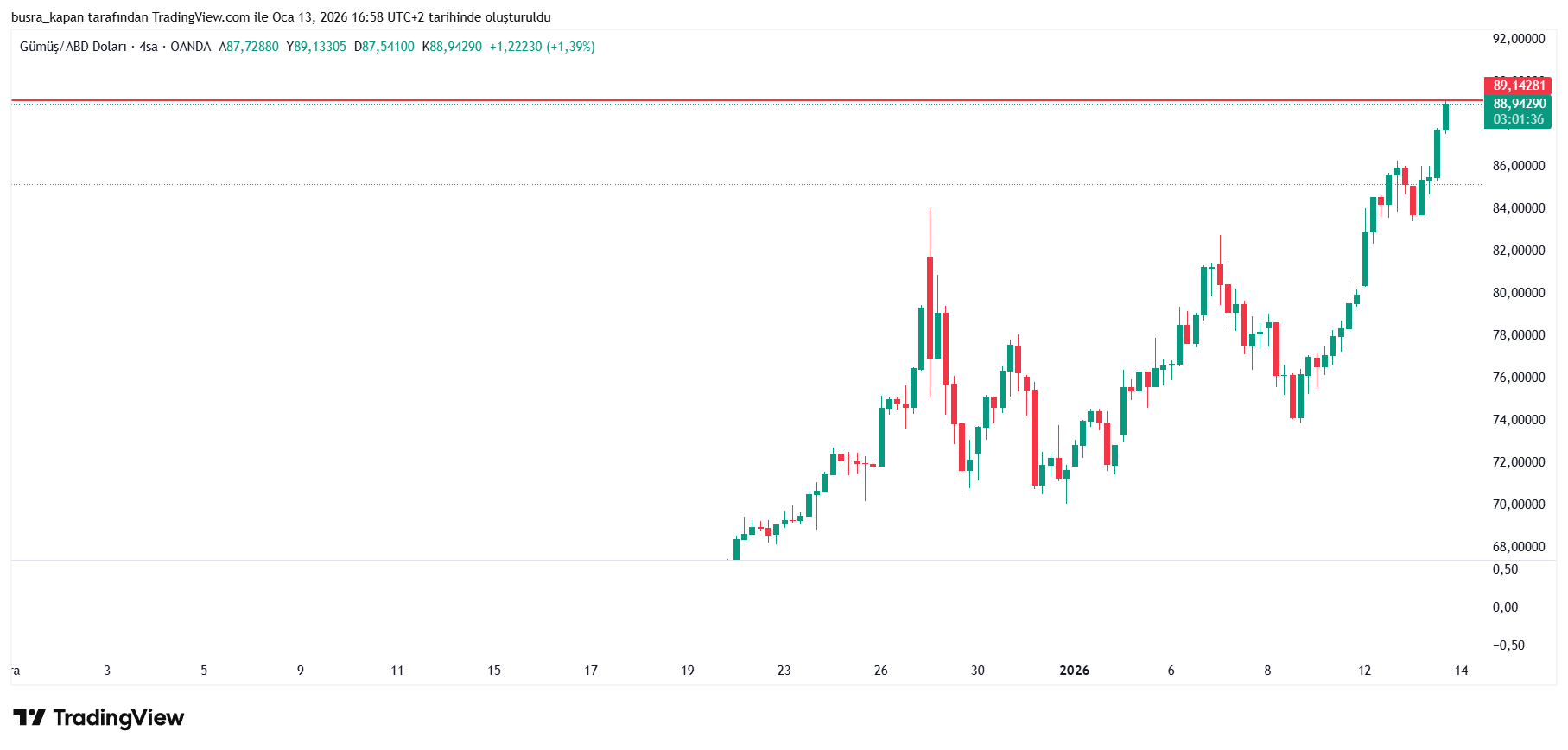 Ons gümüş ise veri açıklanmadan önce 86.77 dolar seviyelerinde bulunurken, veri sonrasında 88.19 dolara çıktı.