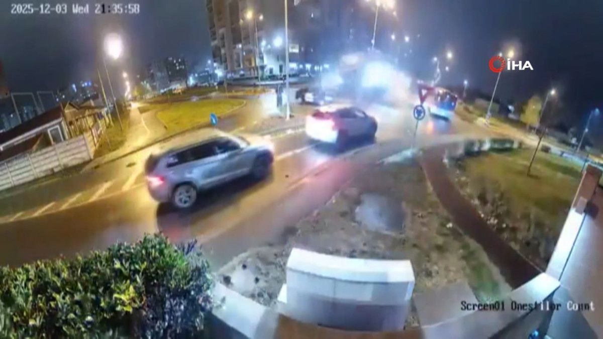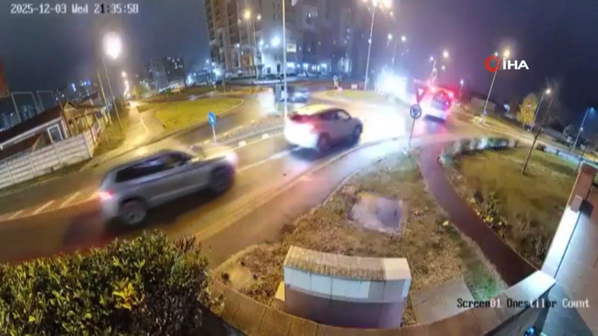 Romanya’nın Oradea kentinde kavşağa çarparak havalanan aracın karşı şeritteki 2 aracın üzerinden uçtuğu anlar, güvenlik kamerasına anbean yansıdı.
